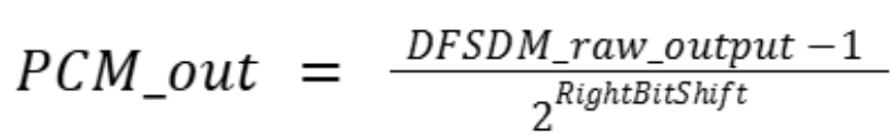 Before calculating the RightBitShift value, let’s go over a few audio signal concepts. In audio, a DC value corresponds to a steady, unchanging input. The gain at DC of a filter shows how much a constant input will be amplified. For the DFSDM, which converts 1-bit PDM into multi-bit samples: