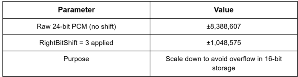 Because the STM32’s DFSDM has 24-bit resolution, the maximum value of the PCM data sample can be expressed as: