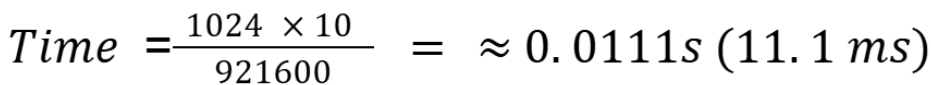Before the data is sent to USART, we need to process the DFSDM output. The DFSDM produces 32-bit signed values, and the buffer dfsdm_dma_buffer[] is declared as int32_t. After decimation, the valid audio sample width is typically 24 bits, but most audio pipelines expect 16-bit PCM. For this reason, we convert the data before transmission. Given a sample rate of 16 kHz and a buffer size of 1024, each DMA callback interrupt occurs every 32 ms. Therefore, the USART baud rate must be fast enough to send out each half of the buffer within this time frame. For example, if we use a baud rate of 921600, the transmission time is: